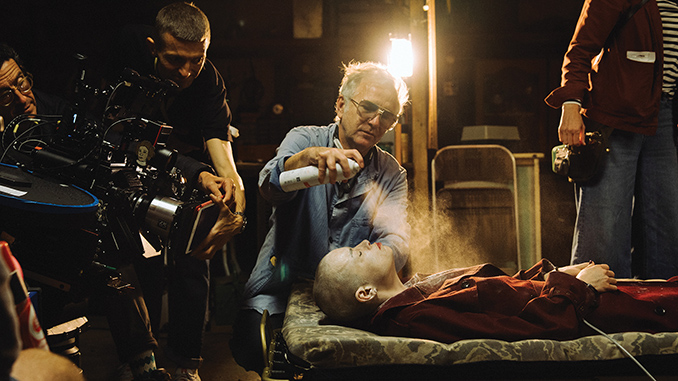 Teddy’s paranoia builds throughout the film, and by the time he kidnaps Michelle, he believes he’s uncovered something critical about the aliens: that they not only communicate through their hair, but that their powers can be weakened by covering them in a medical-grade cream. For Michelle, that meant her entire face and body had to appear coated in product. Finding the right consistency was surprisingly difficult—we needed something that read visually on camera, didn’t dry or crack under lights, and wouldn’t irritate Emma’s skin. We experimented with countless blends of lotions, serums, highlighters, creams, and make-up bases. The texture and effect also had to evolve with Michelle’s deteriorating condition. We used everything from Kryolan watercolors in one scene to La Roche-Posay lotion in another, always adjusting for tone, wear, and performance.