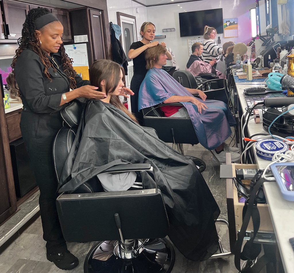 The look of the coaches, the players and cheer squad all played a huge part in the overall visual aesthetic of the show—we had an incredible team in the trailer. Key hair Crystal Broedel took care of coach Hudson, played by Steve Zahn. He needed to be well grooved, but also is going through a stressful time in his life: His imploding marriage and stress on the football field are reflected in the state of his hair underneath his visor. For coach Ricky Hudson, played by Perry Mattfeld, she needed to look all business on the football field, like she was not spending a lot of time on glamour, so we kept her simple with a ponytail and that really lead to a big reveal when we finally see her hair down. Trisha Yeager, played by Wynn Everett, needed to have a very coifed “done” hair style of a well-to-do southern woman. Crystal gave her a gorgeous blowout and roller set that really lasted through our long, hard days in the southern heat. Antoinette Black did a wonderful job taking care of our football players, maintaining locs and twists and was also very involved with our cheerleaders—making them look perfect for game day. Victor Paz barbered our coaches Byrd and Dobbs (Quentin Plair and Clayne Crawford), as well as Danny, played by Frankie Rodriguez—we wanted Danny to look like he put some thought and effort into his style and we reflected that with his gorgeous hair. •