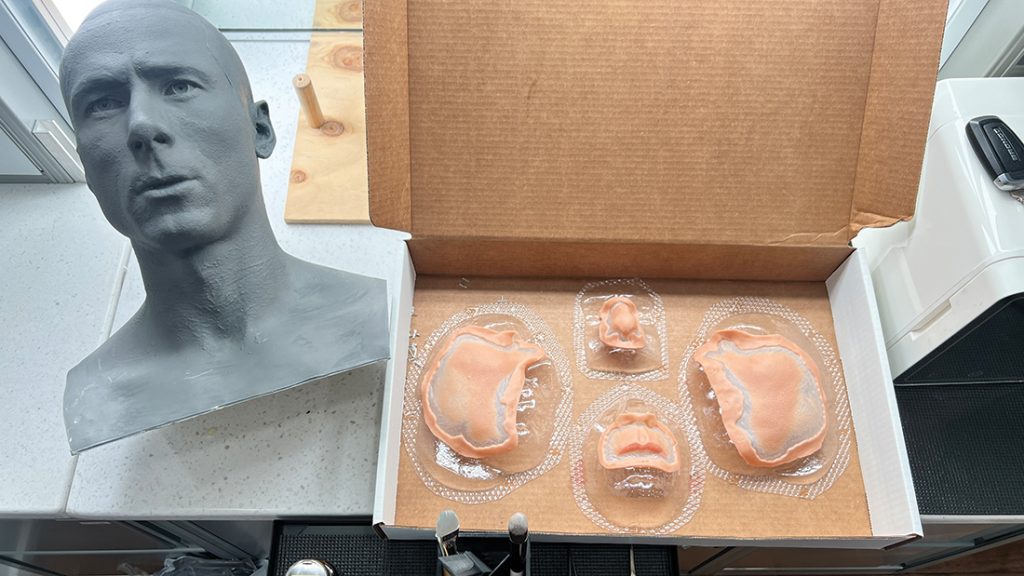 I was brought on as the prosthetic make-up designer on Chad Powers early in the process to start having conversations about the approach to his look. I tend to start sculpture right away on projects like this and have multiple busts of the talent going at the same time for different iterations.