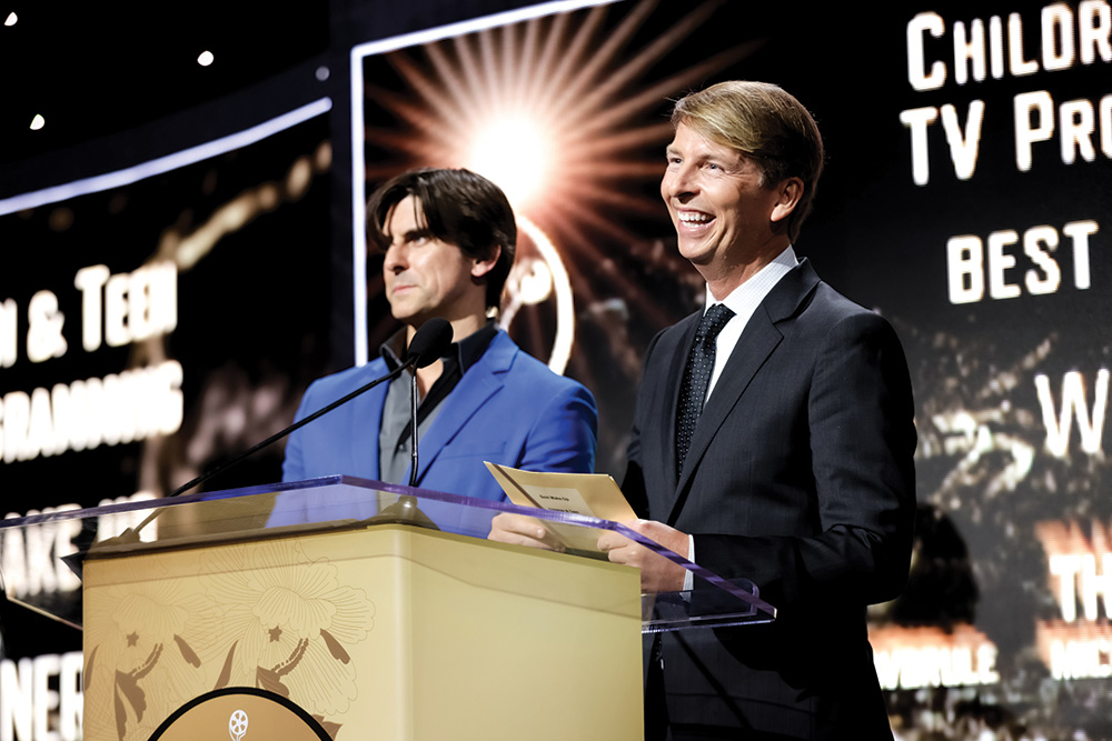 LOS ANGELES, CALIFORNIA – FEBRUARY 11: Cooper Barnes and Jack McBrayer present awards at the 10th Annual MUAHS Awards on February 11, 2023 at The Beverly Hilton Hotel in Los Angeles, California. (Photo by Greg Doherty)