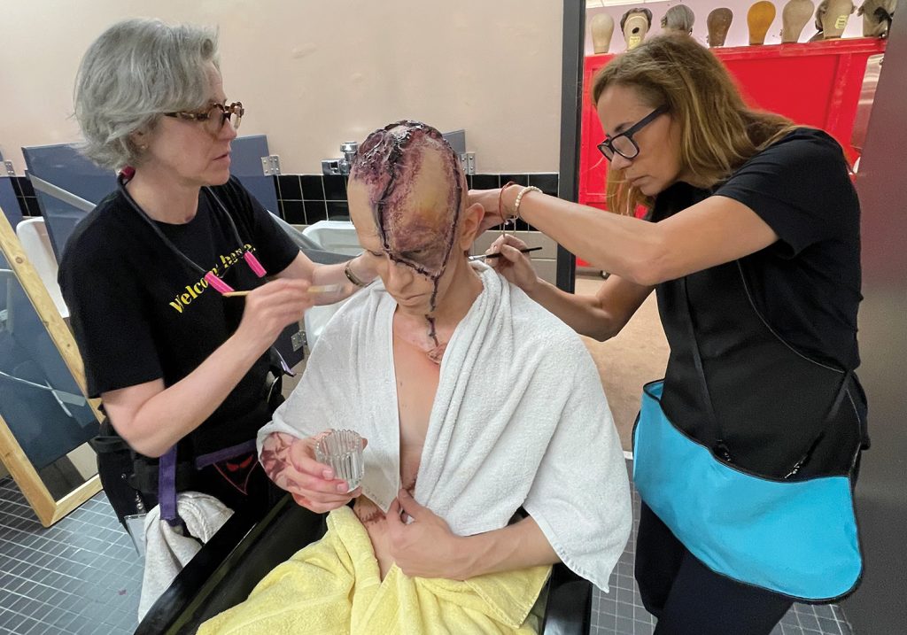 I was trained mainly in film and still photography make-up techniques, so my work has always been minute, with the ability to course correct if there was an issue with the make-up. Learning to work in the world of theater where you must let go and enjoy the wild ride has been a challenge and a joy. None have been as complex and satisfying as Frankenstein’s creature to date. Collaborating with the dancers of the San Francisco Ballet and the make-up artists back home, as well as the locals in Costa Mesa was an amazing time that I am looking forward to repeating.