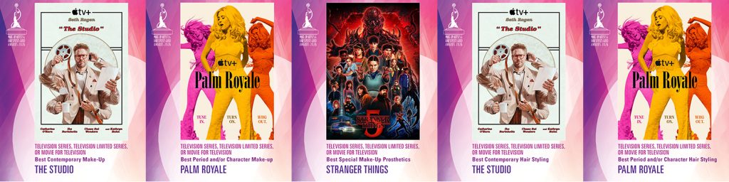 The MUAHS Awards were held before a sold-out crowd of more than 850 attendees, including guild members, industry executives, and press. Actress and producer Rachael Harris (Suits, Diary of a Wimpy Kid, The Hangover) hosted the evening’s festivities. Frankie Grande, host, performer, and social media personality, returned as the star host of the “Live from the Red Carpet” Pre-Show Livestream. This Spring, Grande will join the cast of Titanique on Broadway. Julie Socash, President of Local 706, presided over the ceremony.